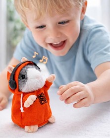 Der interaktive sprechende Wiederhol-Hamster „DJ“ ist ein lustiges Lernspielzeug, das Wörter und Geräusche nachspricht, sich beim Sprechen bewegt und Kinder zum Reden, Zuhören und Spielen anregt. Spielerisch fördert er die Sprachentwicklung, Aufmerksamkeit sowie das Hörverständnis.