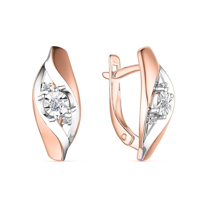 Erstaunliche Ohrringe, Russisches Rot-/Weißgold 585, mit Brillanten 6 Stück 0,083 ct. HSI, Höhe ca. 19 mm