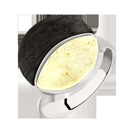 Außergewöhnlicher Damenring, Silber 925, mit Milchbernstein und schwarzer Eiche, Durchmesser ca. 17 mm