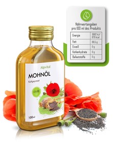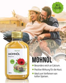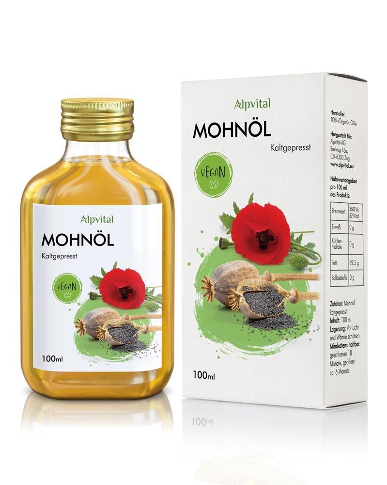 Nahrungsergänzungsmittel, zur Unterstützung einer ausgewogener Ernährung. Mit 100ml Mohnöl. Kaltgepresst.