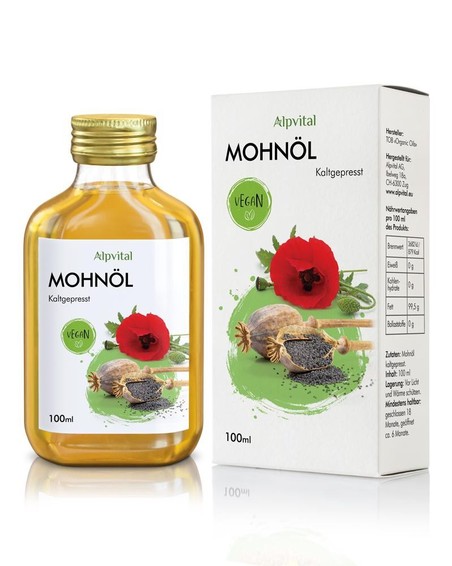 Traubenkernöl oder Hanföl gemischt werden, um die positiven Eigenschaften des Mohnöls zu