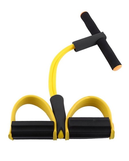 Sportgerät zur Stärkung verschiedener Muskelgruppen, bei dem die Kraftbelastung durch den Widerstand von Gummi entsteht.