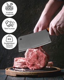 Unser in Europa hergestelltes Messer besticht durch sein Aussehn. Der Holzgriff sorgt für eine natürliche und entspannte Haltung. Er kann sowohl als Hack- als auch als Kochmesser eingesetzt werden.