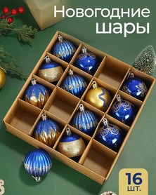 Bringen Sie eine festliche Stimmung in Ihr Zuhause mit diesem eleganten Set aus 16 Kugeln in Blau-Gold. Perfekt für Weihnachtsbäume und andere Dekorationen.