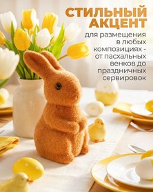Gefertigt aus Schaumstoff mit Flockbeschichtung überzeugt die Figur durch ihre samtige Oberfläche und ihr leichtes Gewicht. Dadurch lässt sie sich flexibel in Osterarrangements integrieren und problemlos mit weiterer Frühlingsdekoration kombinieren.