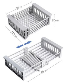 Eine ausziehbare Teleskop-Abtropffläche zum Geschirrspülen und Waschen von Gemüse über der Spüle ist ein kompaktes und praktisches Zubehör für Ihre Küche.