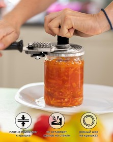Nur auf unbeschädigten Gläsern und Deckeln verwenden. Außerhalb der Reichweite von Kindern aufbewahren. Nach dem Gebrauch reinigen und trocken lagern. Nicht spülmaschinengeeignet. Vorsicht bei scharfen Metallkanten.