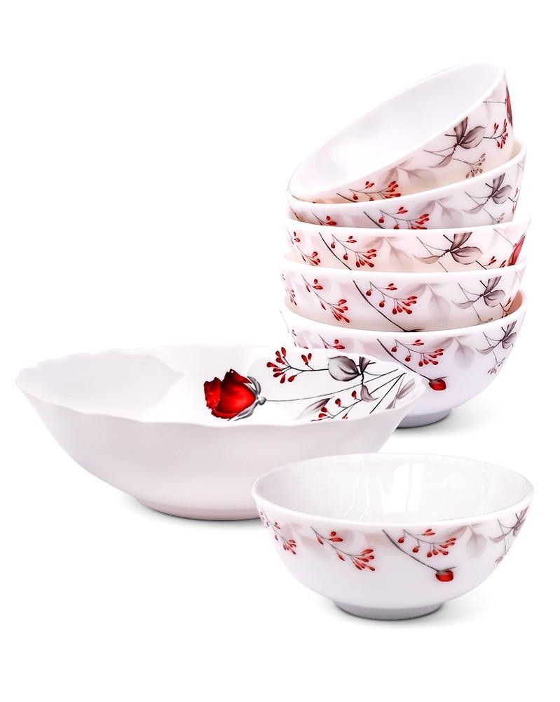 7-teiliges Salatschüssel-Set aus Keramik mit floralem Dekor – ideal für Salate, Obst, Snacks, Desserts und Suppen. Perfekt für Küche und Tischdeko!