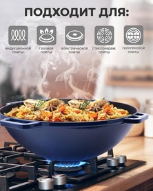 Dieser Kazan eignet sich ideal zum langsamen Garen – er verteilt die Hitze gleichmäßig und bewahrt den Geschmack sowie die Saftigkeit der Speisen. Der dicht schließende Deckel hält Aromen und Wärme zuverlässig im Inneren und sorgt für optimale Garbedingungen – perfekt für traditionelle asiatische Gerichte.