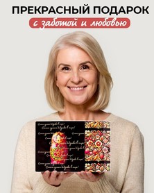 Im traditionellen russischen Stil mit Matroschka-Motiv und Chochloma-Ornament verziert, wird es zu einem rührenden Geschenk für die geliebte Großmutter. Die Aufschrift „Самая лучшая бабушка в мире!“ ist auf Russisch ausgeführt und wiederholt sich über die gesamte Oberfläche, was dem Brett besondere Wärme und Bedeutung verleiht.