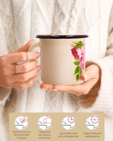 Mit einem Fassungsvermögen von 400 ml ist die Tasse ideal für Tee, Kaffee, Kakao, Kräuteraufgüsse oder Erfrischungsgetränke. Dank der Emaille-Beschichtung behalten die Getränke ihr natürliches Aroma und ihren Geschmack, während die Tasse selbst hygienisch, geruchsneutral und gesundheitlich unbedenklich bleibt.