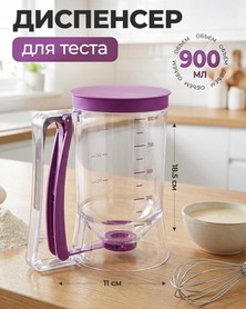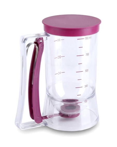 Praktischer Teigspender mit Deckel und 900 ml Volumen (18.5 x 10 cm) für sauberes und präzises Dosieren von Teig für Pfannkuchen, Muffins und Cupcakes - ohne Tropfen und Kleckern. Einfach zu bedienen, hygienisch und perfekt für das Backen zu Hause.