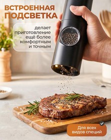 Die elektrische Gewürzmühle ist ein modernes und praktisches Küchenwerkzeug, mit dem Sie Salz, Pfeffer und andere Gewürze mühelos mahlen können. Sie verfügt über eine integrierte Beleuchtung, was eine besonders präzise Anwendung ermöglicht.