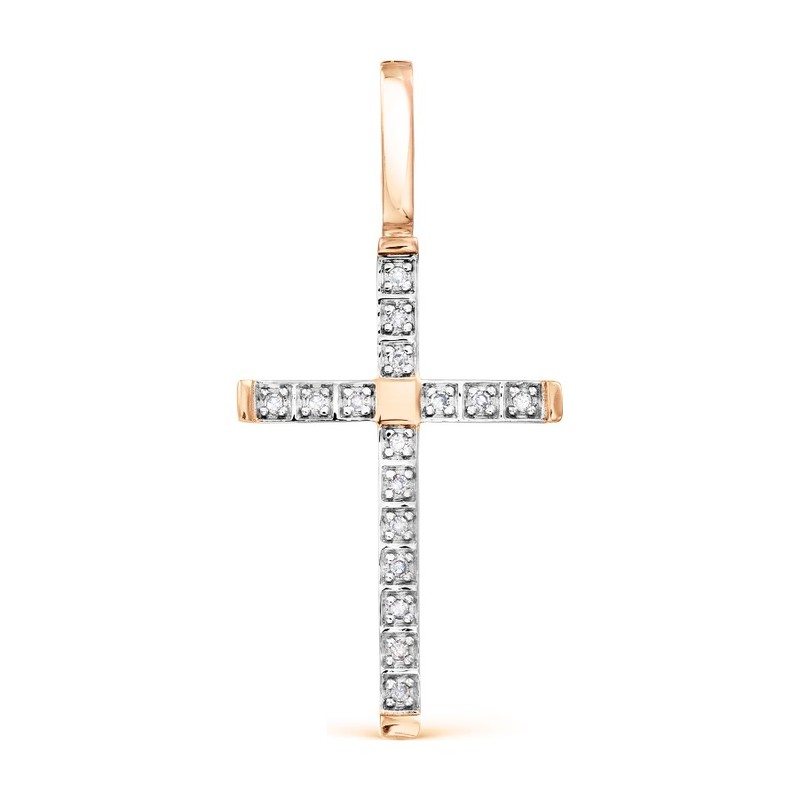 Charmante Anhänger-Kreuz, Russisches Rotgold 585, mit 16 Brillanten d.0,85/0,0464 ct. HSI, Höhe ca. 30 mm