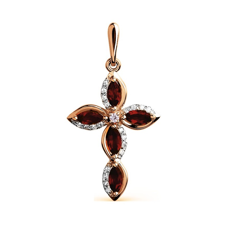 Anhänger – Kreuz mit Zirkonia und Granat