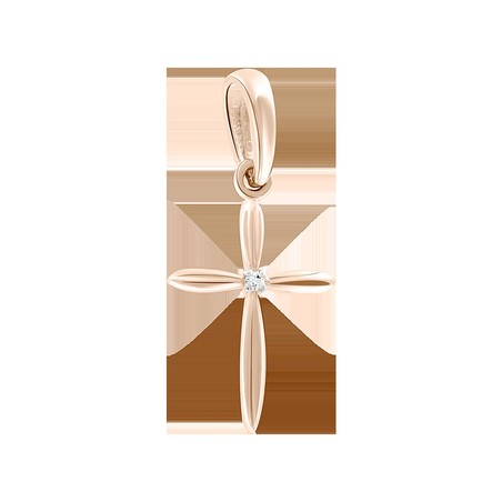 Charmante Anhänger-Kreuz, Russisches Rotgold 585, mit 1 Brillant 0,005 ct. HSI, Höhe ca. 20 mm