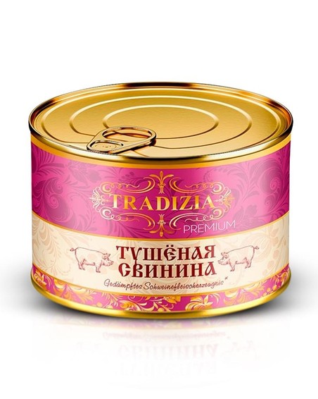 Tradizia Premium Schweinefleisch (Tuschonka) ist ein vielseitiges Konservenfleisch mit ca. 90 % Schweinefleisch, das kräftigen Geschmack bietet und sich ideal für Zuhause, Reisen oder Camping eignet.