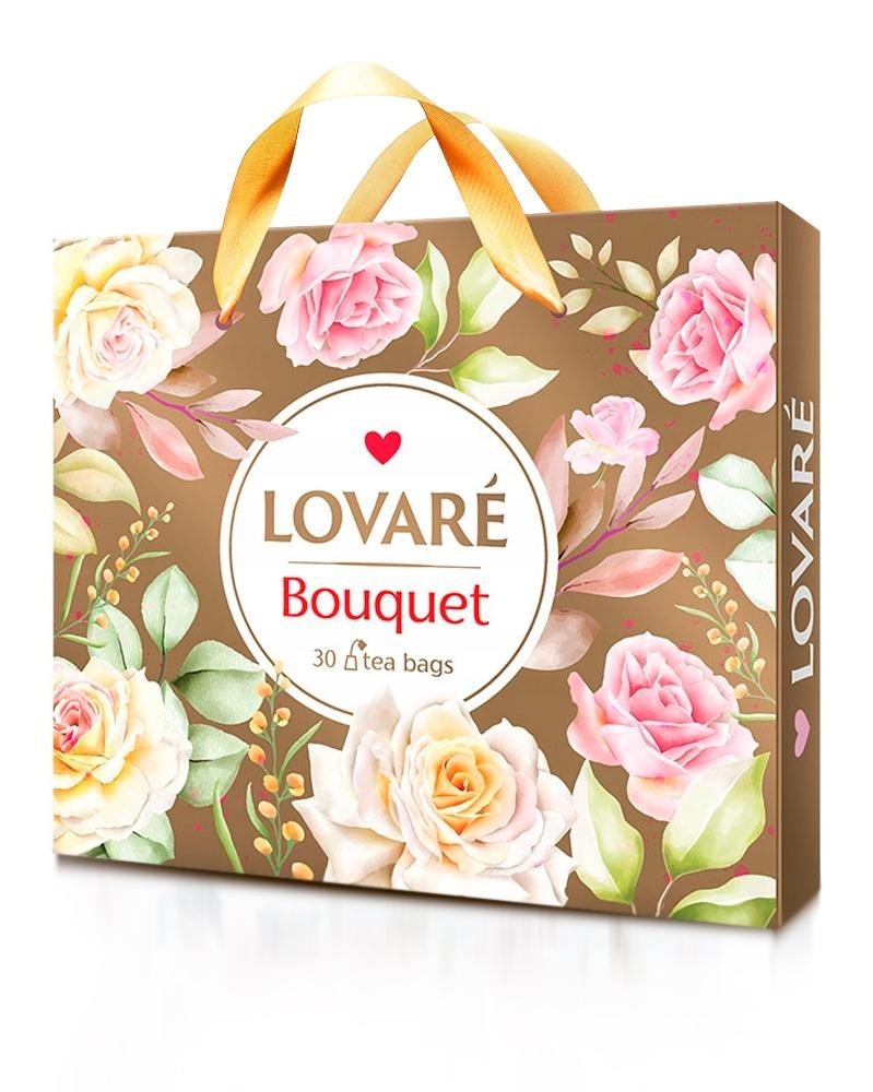LOVARE „Gold Bouquet“ – erlesenes Tee-Assortiment aus schwarzem, grünem und fruchtigem Tee mit feinen Zutaten. 30 Beutel à 2 g. Für abwechslungsreiche Genussmomente.
