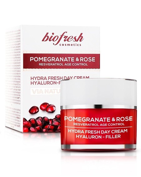 Biofresh Hyaluron Filler Tagescreme mit Granatapfel und Rosenwasser – Ihr idealer Begleiter im Kampf gegen die Zeichen der Hautalterung und zur Unterstützung der Hautelastizität.