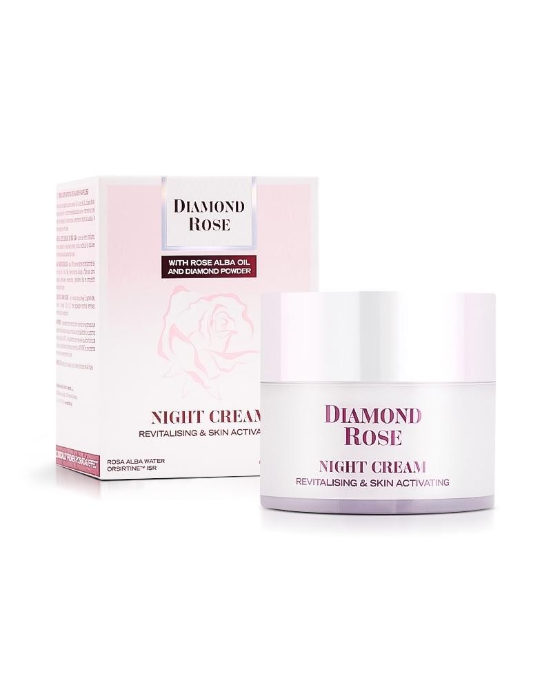 Die revitalisierende Nachtcreme DIAMOND ROSE wurde entwickelt, um die natürliche Schönheit und Energie der Haut während des Schlafs zu aktivieren. Die seidige Textur legt sich sanft auf die Haut, spendet intensive Feuchtigkeit und wertvolle Nährstoffe. Der zarte Duft der bulgarischen Rose schenkt ein Gefühl von Ruhe und Geborgenheit - ein luxuriöses Abendritual für Körper und Sinne.