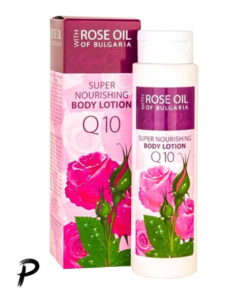Die REGINA ROSES Körperlotion Q10 mit Lifting-Effekt spendet intensive Feuchtigkeit und verbessert die Hautelastizität, für ein samtig-weiches Hautgefühl. Der Wirkstoffkomplex mit Coenzym Q10, Panthenol und Rosenöl fördert die Hautstraffung.
