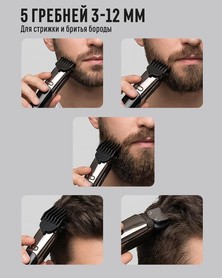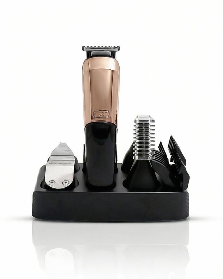 6-in-1 Multifunktionsgerät für Haarschnitt, Bart- und Körperpflege. Scharfe Edelstahlklingen für präzises Schneiden. Mehrere Aufsätze für unterschiedliche Haarlängen.