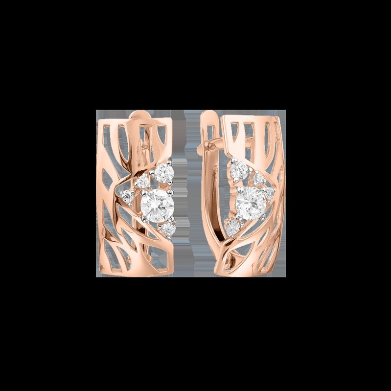 originelle Ohrhänger, Rotgold 585, mit Zirkonia. Höhe ca. 17 mm