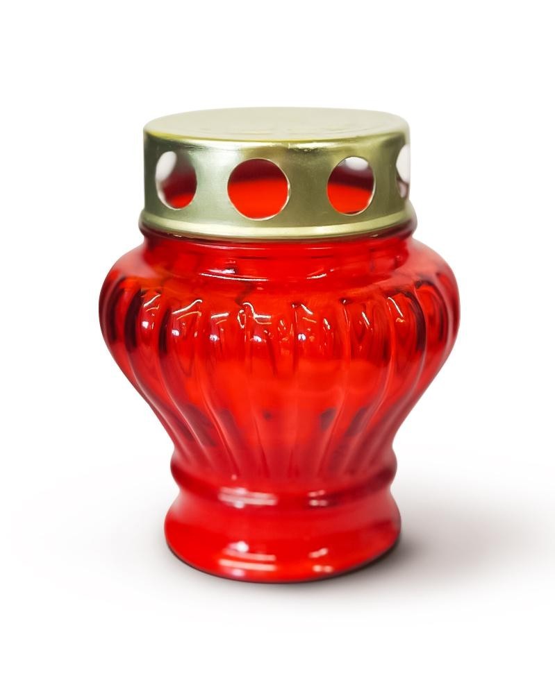Durch das Glas und die breite Basis steht die Ritualkerze auch im Wind stabil. Die Brenndauer dieser Lampe beträgt bis zu 8 Stunden.