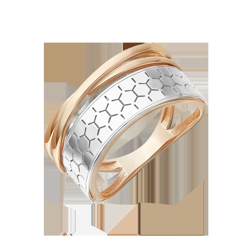 Ein modernes Ringdesign aus Bicolor-Gold – eine stilvolle Verbindung von Eleganz und geometrischer Klarheit. Die elegante Form vereint den warmen Glanz von Rotgold mit der kühlen Präzision des Weißmetalls, verziert mit einem feinen Wabenmuster.