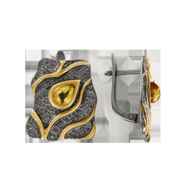 Stilvolle Ohrhänger, Silber 925, vergoldet, rhodiniert, mit Bernstein, Höhe ca. 20 mm