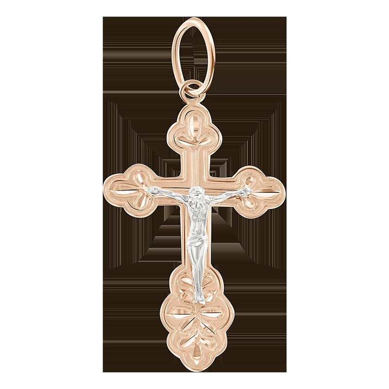 Schöner Kreuzanhänger, Russisches Rotgold 585, mit Gravur "Спаси и сохрани", Höhe ca. 45 mm