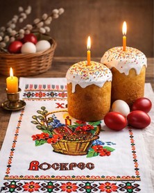 Gefertigt aus 100 % Gabardine überzeugt das Tuch durch seine hochwertige Qualität und formstabile Struktur. Mit einer Größe von 27х57 cm ist es perfekt geeignet für die Osterweihe von Kuchen und Speisen.