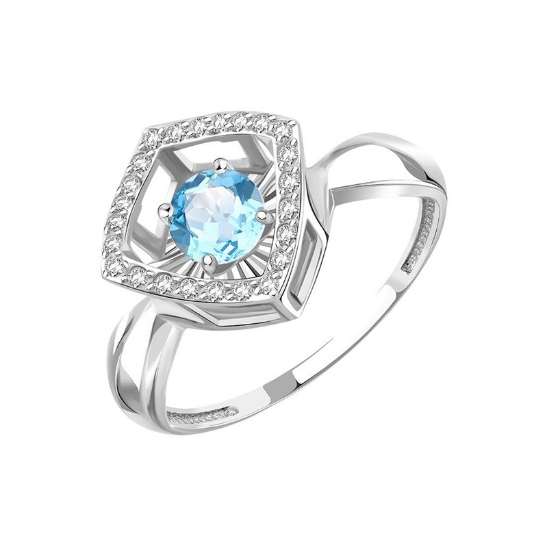 Damenring, Russisches Weißgold 585, mit Topas und Zirkonia, Durchmesser Stein ca. 5-6 mm, Größe Kaste ca. 12 mm, Höhe ca. 7-8 mm