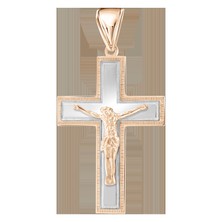 572.00 €Очаровательная подвеска - крест из красного и белого золота 585 пробы, с гравировкой, вес ≈ 4,0 гр., высота ≈ 49 мм. -