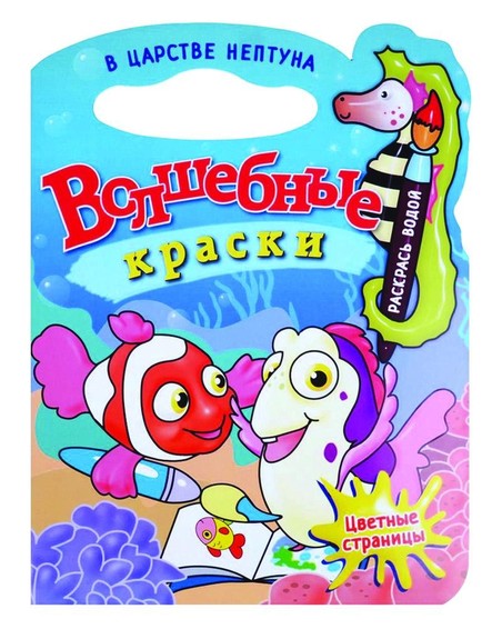 Раскраска содержит 8 иллюстраций цветными "водными" красками на офсетной бумаге. Обложка на глянцевой мелованной бумаге. Фигурная высечка с 3-х сторон.