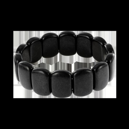 Браслет изготовлен из полудрагоценного камня Бяньши, который добывается в Китае, в месте падения метеорита. Браслет состоит из 14 камней в мягкой прямоугольной формы. Черный нефрит очень почитается в Китае и некоторых других странах. Его в Китае называют «Камень жизни». Браслеты из нефрита бяньши часто применяют как обереги или амулеты. Это обусловлено сильной энергетикой минерала. Украшение помогает выполнять желания своего обладателя, меняет жизнь к лучшему, облегчает поиск своего предназначения. Камень подходит всем людям без исключения и обладает целебными свойствами. У камня уникальный состав. После проведения химического анализа удалось выяснить, что в его составе есть больше 30 элементов, причем таких важнейших, как железо, цинк, медь, фосфор и калий, в которых нуждается человеческий организм. Учеными было также установлено, что из него исходит инфракрасное излучение, схожее с излучением, идущим от тела человека. Если вы возьмете в руку бяньши, то сами почувствуете приятное тепло. Также, если камень бяньши потереть о кожный покров, появляется ультразвук. С его помощью излечивается большое количество самых разнообразных заболеваний. Браслет из бяньши будет полезен людям, работа которых связана с частым использованием компьютера, мобильных устройств и прочей техники, которая генерирует электромагнитное излучение. Также он пригодится людям с малоподвижным образом жизни. Поможет при длительной, напряженной физической работе и при постоянных стрессах и нервных ситуациях.