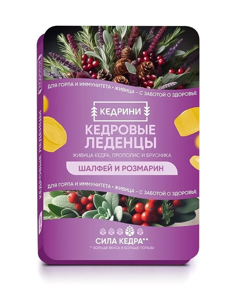 КЕДРИНИ Леденцы кедровые «Шалфей и розмарин», 6 штук