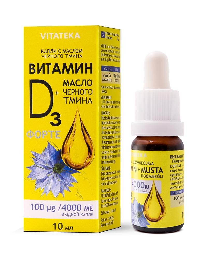 Витамин D3 с маслом черного тмина 4000 ME (международных единиц) - это пищевая добавка, которая сочетает в себе преимущества витамина D3 и черного тмина.