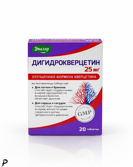 Дигидрокверцетин от ЭВАЛАР - биологически активная добавка для дополнительной поддержки нормального состояния сосудов и капилляров. В 1 таблетке содержится не менее 25 мг дигидрокверцетина (100 % адекватного уровня суточного потребления).