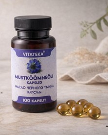 VITATEKA Масло чёрного тмина - натуральный продукт холодного отжима в капсулах, источник Омега-6 жирных кислот. Удобная форма обеспечивает точную дозировку и комфортный ежедневный приём.