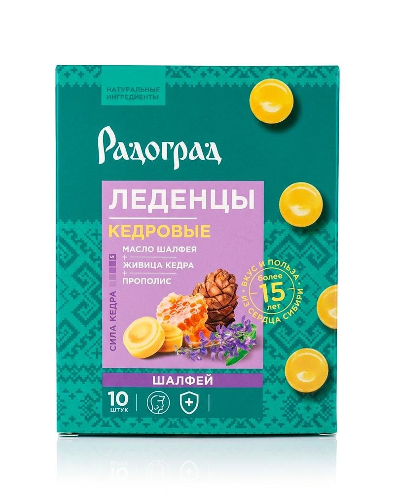 РАДОГРАД Кедровые леденцы с шалфеем, живицей и прополисом, 10 шт.