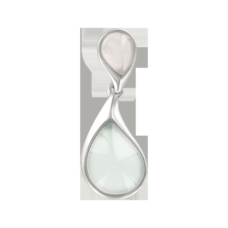 Изящная подвеска из серебра 925 пробы, с розовым кварцем и голубым агатом, высота ≈ 31 мм. Интересный дизайн подвески с каплевидными камнями выглядит нежно и притягательно. Розовый кварц – одна из разновидностей кварца. Камень полупрозрачный. Отличается неповторимым нежным розовым оттенком и красивым стеклянным блеском. Кварц помогает залечить душевные раны и восстановить гармонию души. Розовый кварц делает человека добрее, отзывчивее. Голубой агат - это нежный камень, несущий гармонию, спокойствие и благодать. Он умиротворяет, усмиряет гнев, снижает нервозность. За эти свойства его считают камнем счастья, а также надежды. Утонченная и притягательная подвеска добавит вашему образу свежести и женственности. К подвеске есть кольцо.