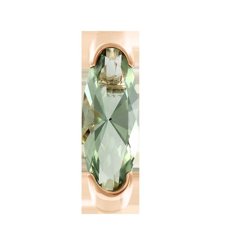 Камень светло-зеленого цвета, чаще уходящего в золотой, является разновидностью кварца, называют празиолитом или зеленым аметистом. Этот камень - мощный талисман чистоты и преданности. Он дарит гармонию с собой, умиротворение, помогает справиться с негативным воздействием и разобраться в предчувствиях. Считается, что колье или подвеска с зеленым аметистом убережет свою обладательницу от чужого негатива, зависти, дурного глаза, неприязни. Данное украшение с вытянутым кристаллом в овальной огранке и оригинальными полу глухими закрепками смотрится необычно и стильно. Украшения с этим камнем наполнят Вас энергией, ощущением легкости и свободы. Данный минерал очаровывает мягкой женственностью, своей прозрачностью и при этом, блеском. Но главное его достоинство – невероятно красивый мятный оттенок, такой модный во все времена. Обзаведитесь украшением с этим камнем, и Вы не останетесь незамеченной! К подвеске есть серьги-пусеты.