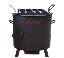 В корпус учага поместить и закрепить на зацепах второе дно. Уложить на него твердое топливо и разжечь. Установить на учаг подставку для шампуров и пользоваться ей по принципу мангала.