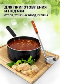 Черпак с длинной ручкой, отлично подходит для казанов объёмом от 12 до 22 литров, Вы никогда не обожжетесь о горячий пар или о края казана.