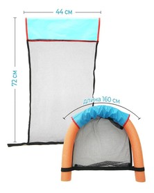 Конструкция представляет собой сетку сиденье и нудл для плаванья. На поролоновую палку надевается сетка, что образует сидение. Палку для плаванья можно использовать отдельно.
