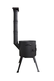 Металлический цилиндр-корпус, съёмные ножки, дверца, кочерга и разборная труба