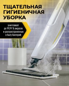 Система EasyFix позволяет быстро и просто закрепить и снять моющую насадку, а встроенная функция паровой очистки эффективно справляется с удалением загрязнений без использования химикатов. Пар под высоким давлением проникает в поверхность, уничтожая не только видимые загрязнения, но и бактерии, что гарантирует абсолютно гигиеничную уборку.