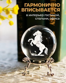 Такой кристальный шар идеально подходит для украшения гостиной, офиса, кабинета или спальни. Он гармонично вписывается как в современный, так и в классический интерьер, подчёркивает утончённый вкус владельца и создаёт атмосферу элегантности и уюта.