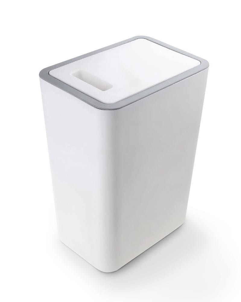 Корпус выполнен в универсальном белом цвете, а крышка украшена аккуратной серой окантовкой, что делает ведро стильным и подходящим к любому интерьеру. Материал - прочный пластик, который легко очищается, не впитывает запахи и устойчив к ежедневному использованию.